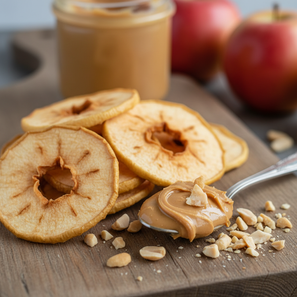 سیب خشک سبک، معطر و فاقد شکر اضافه است؛ و کره بادام‌زمینی با پروتئین و چربی خوب، آن را کامل می‌کند.